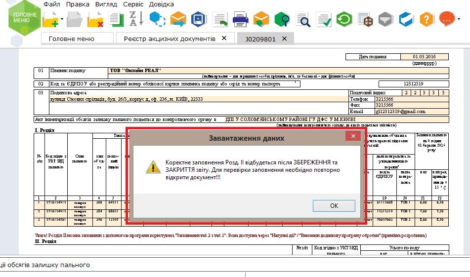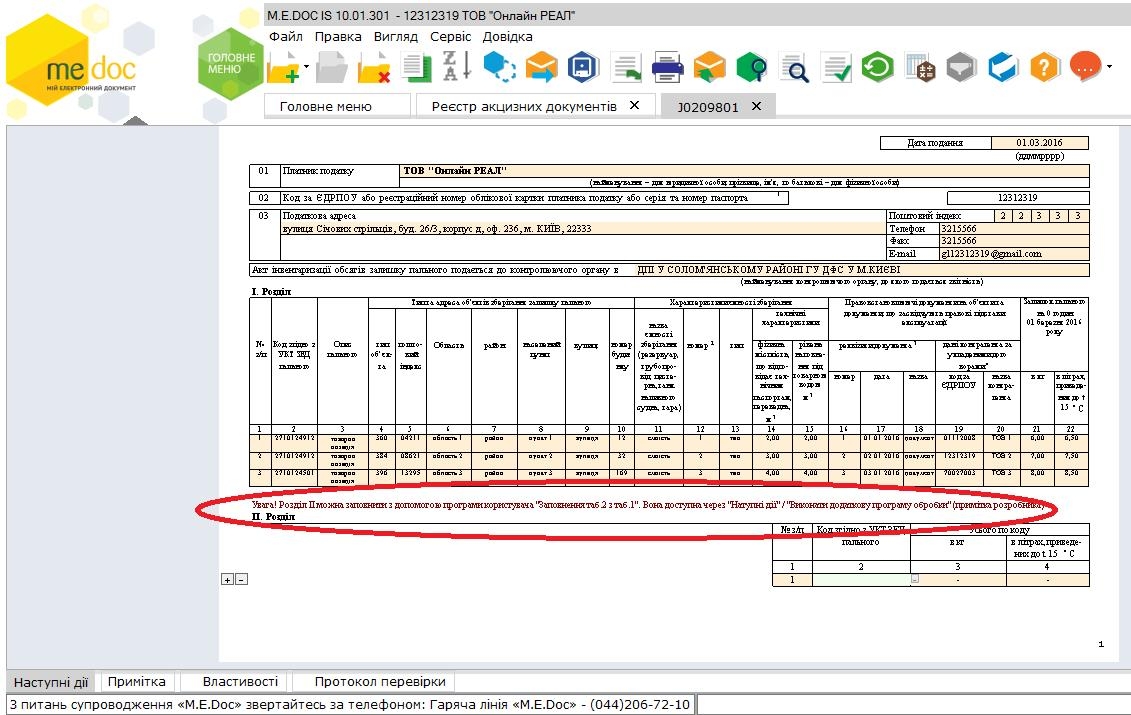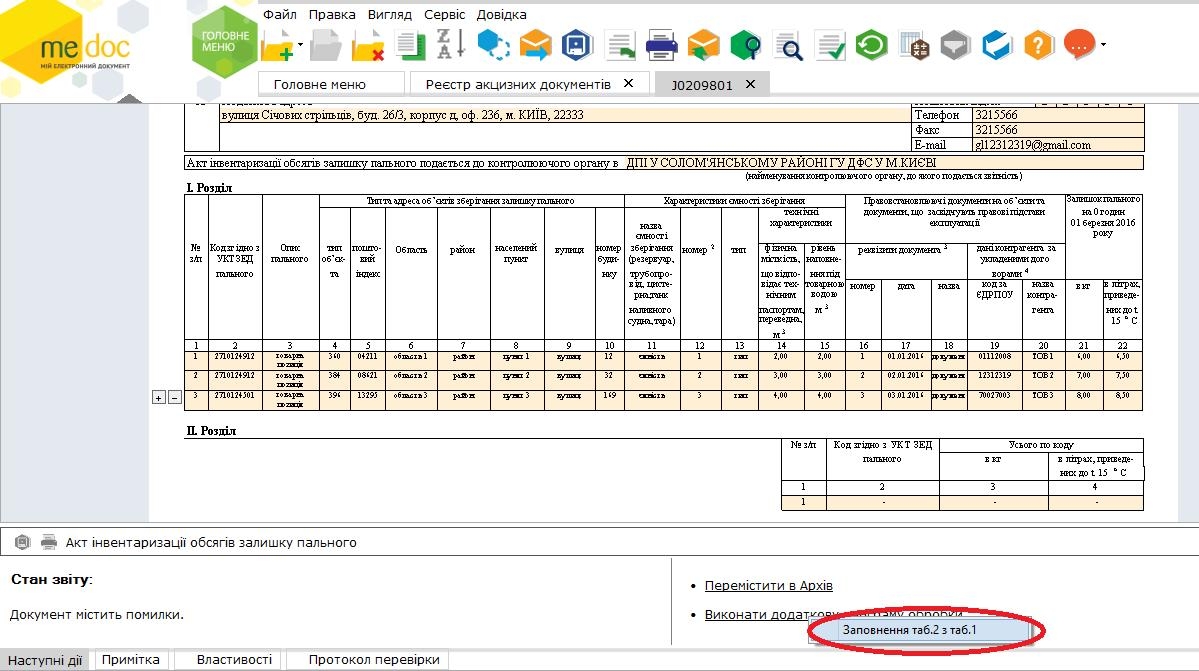 Як уже повідомляли раніше, акт інвентаризації (J/F0209801) містить два розділи, в яких одні й ті ж дані про обсяги пального відображені в різних розрізах - у Розділі І - у розрізі об'єктів, на яких зберігається пальне, в Розділі ІІ ті ж самі дані згруповані за кодами УКТ ЗЕД.